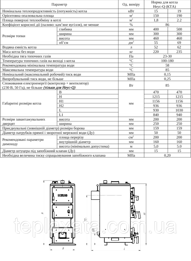 Представлені опалювальні котли НЕУС Q тривалого горіння з потужністю 15 і 19 кВт розраховані на експлуатацію в приміщеннях з площею від 60 до 200 м2. Це можуть бути житлові приміщення, комерційні або адміністративні будівлі, де вже є організована центральна система опалення.